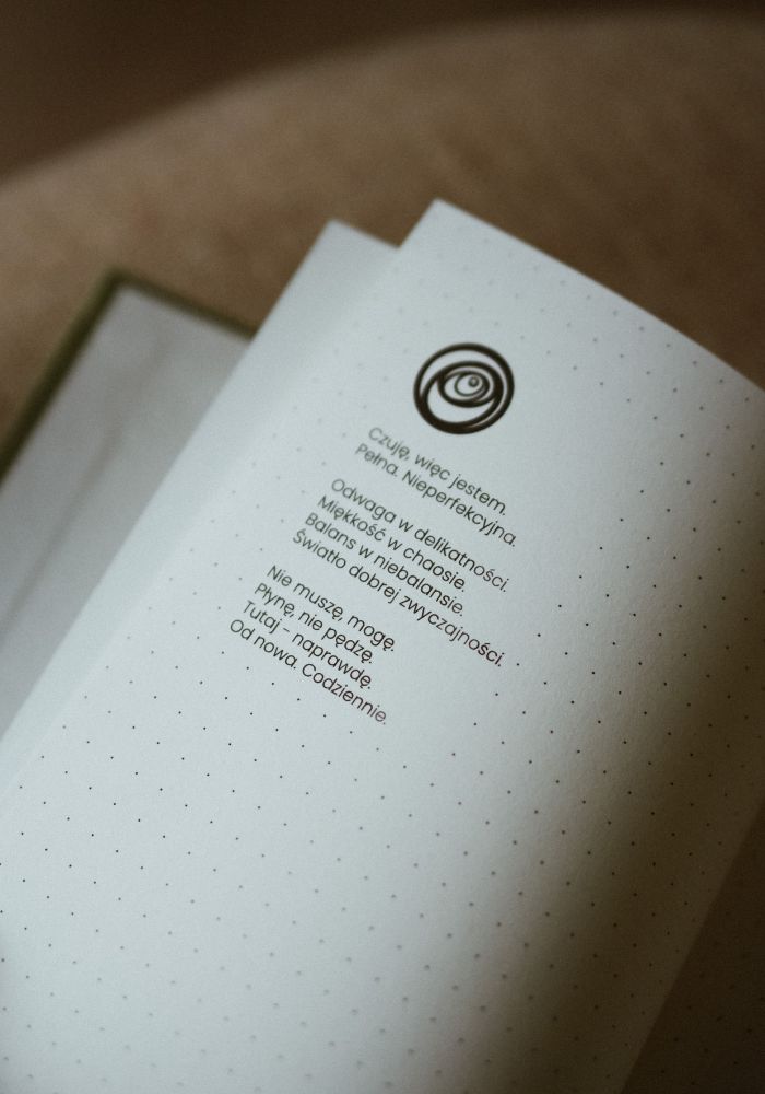 - Subtelna sentencja na początku - delikatne przypomnienie o miękkości, czuciu, byciu.